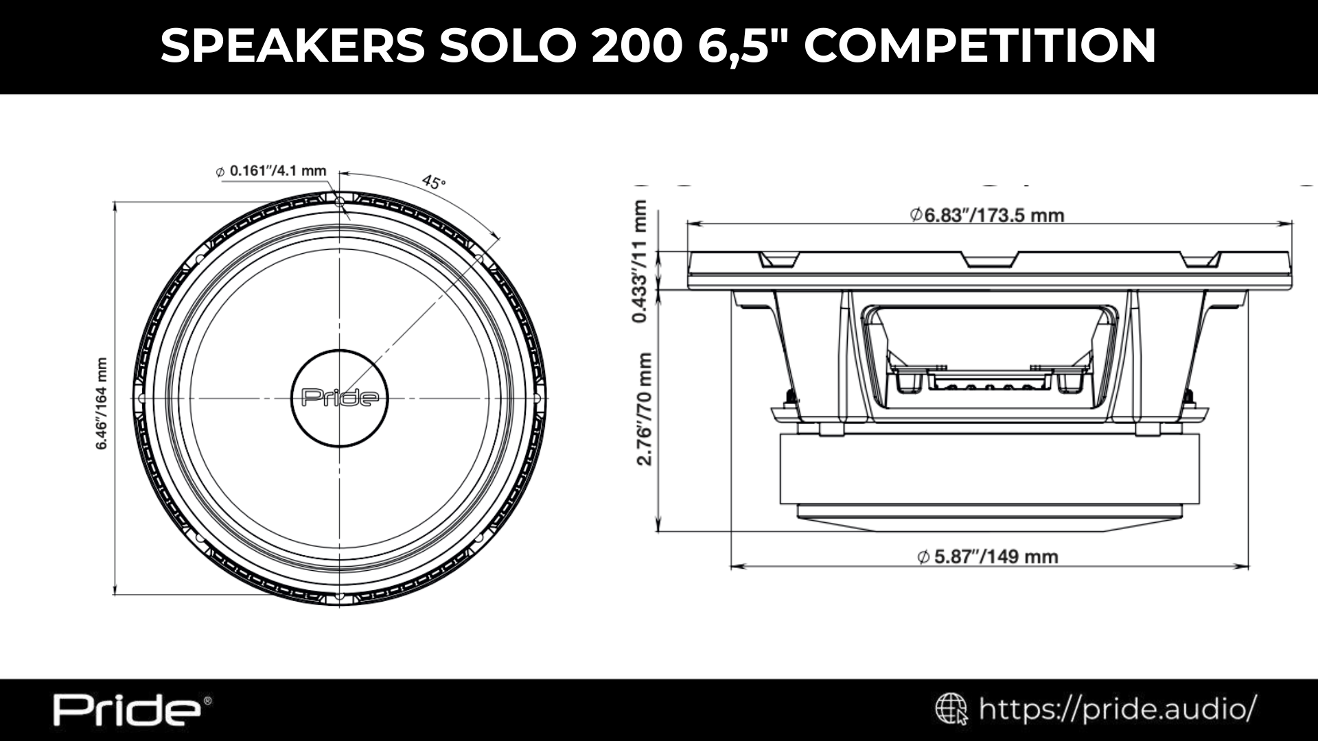 The Pride Solo 200 6.5 Competition is a 6.5″ wideband midrange loudspeaker designed for powerful and clean vocal reproduction in car audio systems. Engineered with a balance of efficiency and strength, this model is ideal for both daily setups and competition systems where clarity and SPL matter.