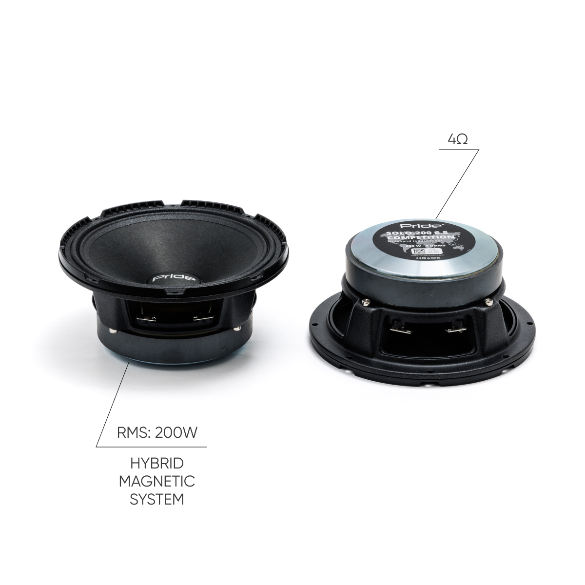 Среднечастотные динамики Pride Solo 200 Competition 6,5″ — идеальное решение для тех, кто ищет громкий, чистый и насыщенный звук. Разработанные специально для автомобильных аудиосистем, эти динамики обеспечивают исключительное воспроизведение средних частот, улучшая общее впечатление от музыки яркими высокими и глубокими низкими частотами.